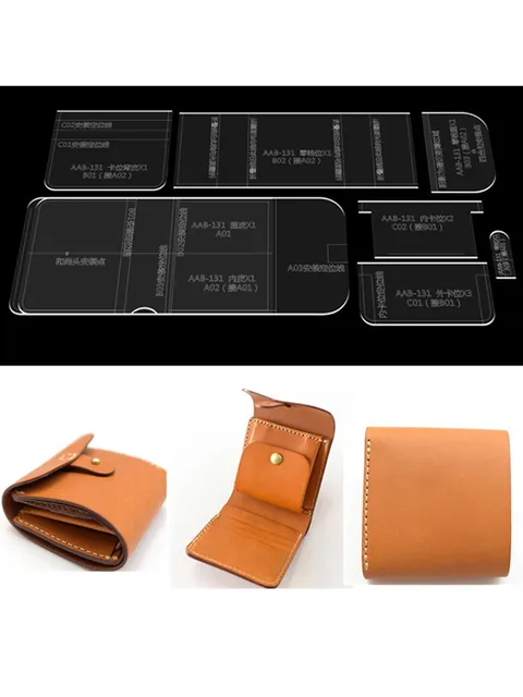 1 Set Laser Cut Clear Acrylic Template Pattern For Diy Handmade Short Wallet Leather Craft Sewing Pattern Sewing Stencils Sewing Patterns Aliexpress